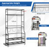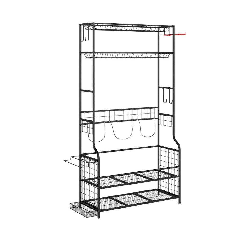 Spacious and Practical Design: This golf organizer for garage fits 3 standard golf bags side by side, providing ample room. Plus, it also features 2 fixed baskets perfect for balls, tees and gloves, while the bottom shelf is designed to hold shoes.