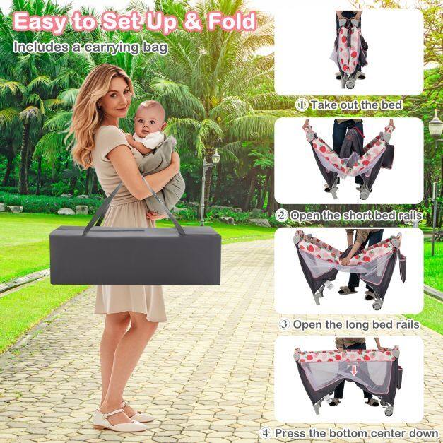 Detachable & Folding Design: The diaper table, mattress and toy rack can be easily removed from the baby playard. After removing these parts, the playpen can be quickly folded up without extra tools for easy storage and transportation when not in use. And you can take it anywhere with the provided carrying bag.