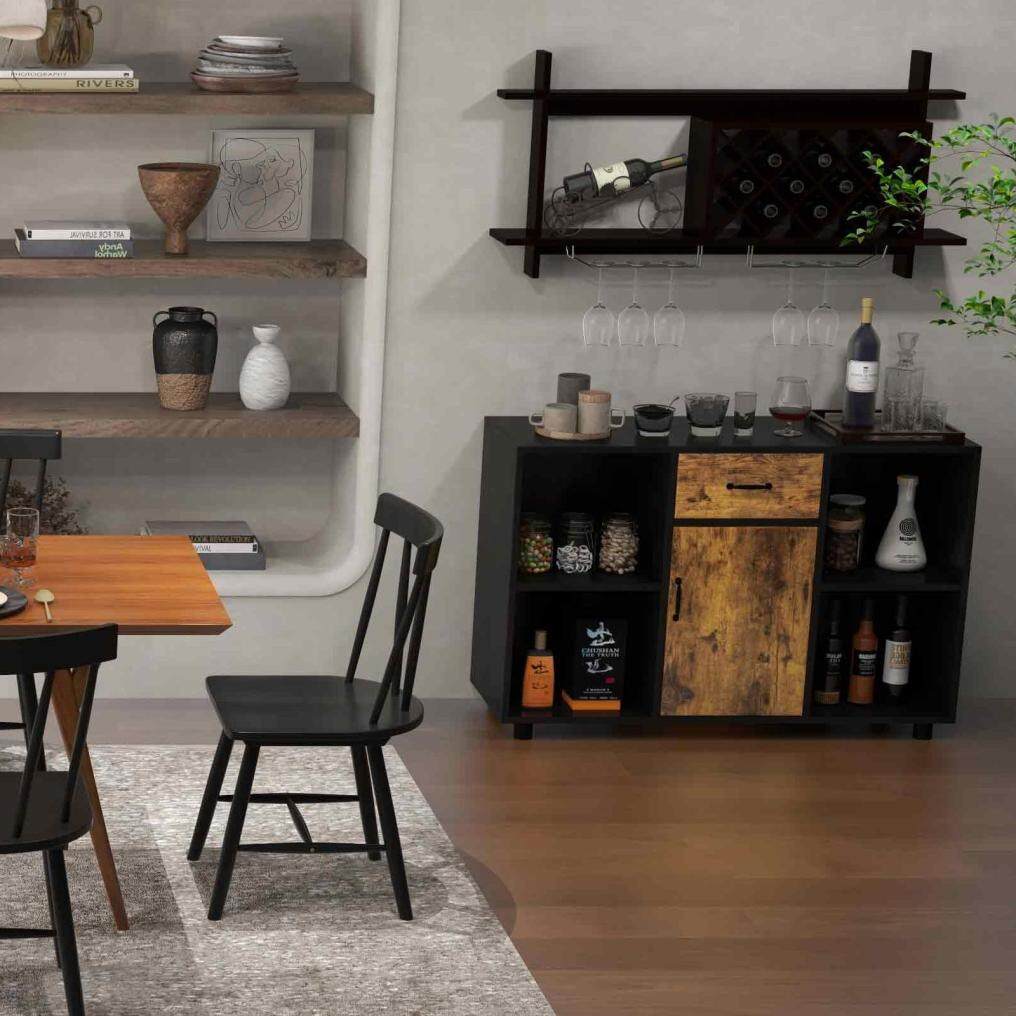 ● Smart Storage Solutions: Enjoy ample storage with the sideboard’s open cubbies, drawer, and cabinet, plus additional utility from the wine rack’s 10-bottle capacity and stemware holders. Ideal for organized living.