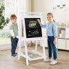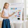 This double-sided easel has a practical chalkboard and magnetic whiteboard, as well as a replaceable paper roll, providing endless drawing possibilities. Kids can store their art tools on 2 tool trays and 1 large tray while drawing. 3 paint cups help kids organize their paintbrushes. With 3-level adjustable height, the easel will grow with your child. Designed with kid’s safety in mind, the easel features smooth rounded corners and edges to avoid injuries. Additionally, the versatile easel is also easy to fold for space-saving storage or convenient transport. Let your child's imagination soar with our interactive easel.