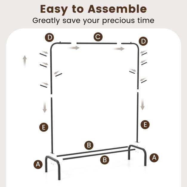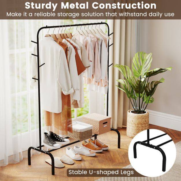 Heavy-duty Construction: Built with a sturdy metal frame, this garment rack makes it a reliable storage solution that withstand daily use. Moreover, the reinforced U-shaped legs add extra stability.