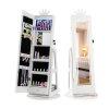 Built-in Convenient Features: This swivel jewelry organizer includes 4 LED lights that brighten the internal acrylic mirror for clear visibility and effortless accessory selection even in low light condition. The auto-on lights with one-button control add great convenience in daily use.