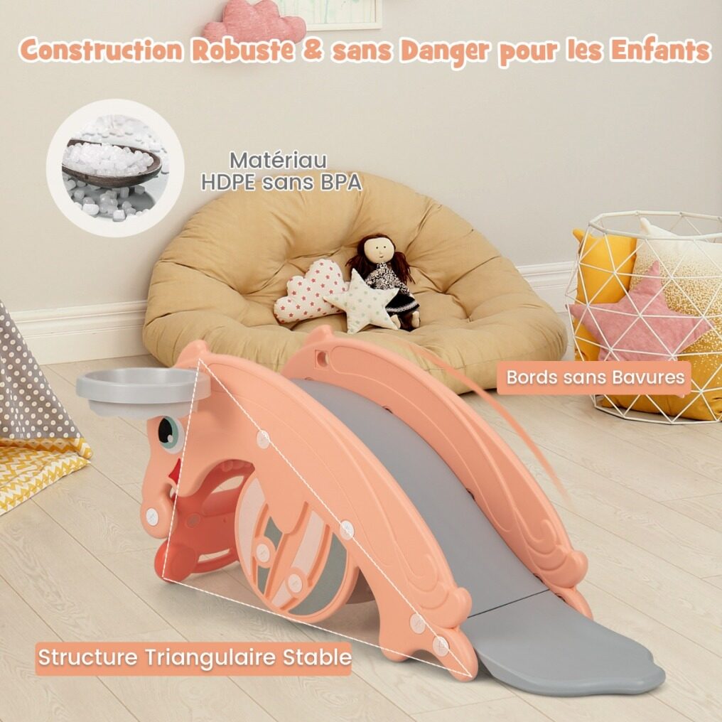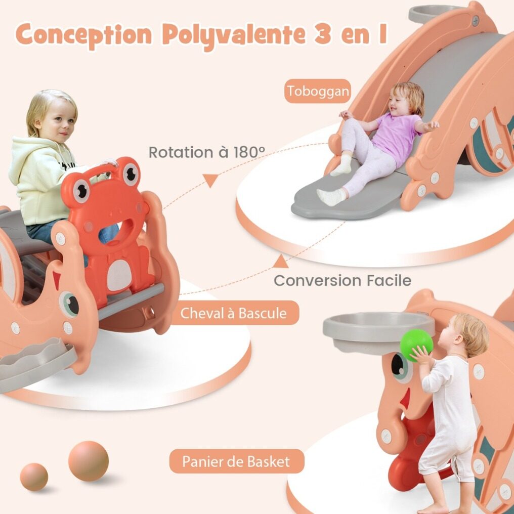 ● 3-In-1 Convertible Game Center: Thanks to the 3-in-1 versatile design, the rocking horse and slide set allows kids to enjoy the joy of rocking, sliding, and shooting hoops. The rocking horse can be effortlessly transformed into a toddler slide with a basketball hoop by rotating it 180°.