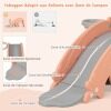 ● Kid-friendly Slide with Buffer: The slideway includes the acceleration zone, deceleration zone, and considerate buffer zone, allowing kids to slide down smoothly and safely. The spacious waiting area enables kids to sit comfortably, while the 2-step climbing ladder ensures easy climbing.
