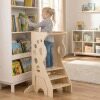 【Suitable for Various Occasions】Designed to provide access to sink or countertop height, this wooden tower with a 2-step stool accompanies your child's growth through various daily routines. It fits perfectly in several spaces, whether it's the kitchen, bathroom, nursery, or toilet.