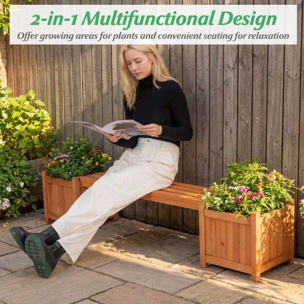 2 in 1 Design: Experience versatility with the combination of planters and a seamlessly integrated wooden slat bench, which can be used together for a harmonious overall look or separately as a single planting and seating solution.