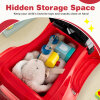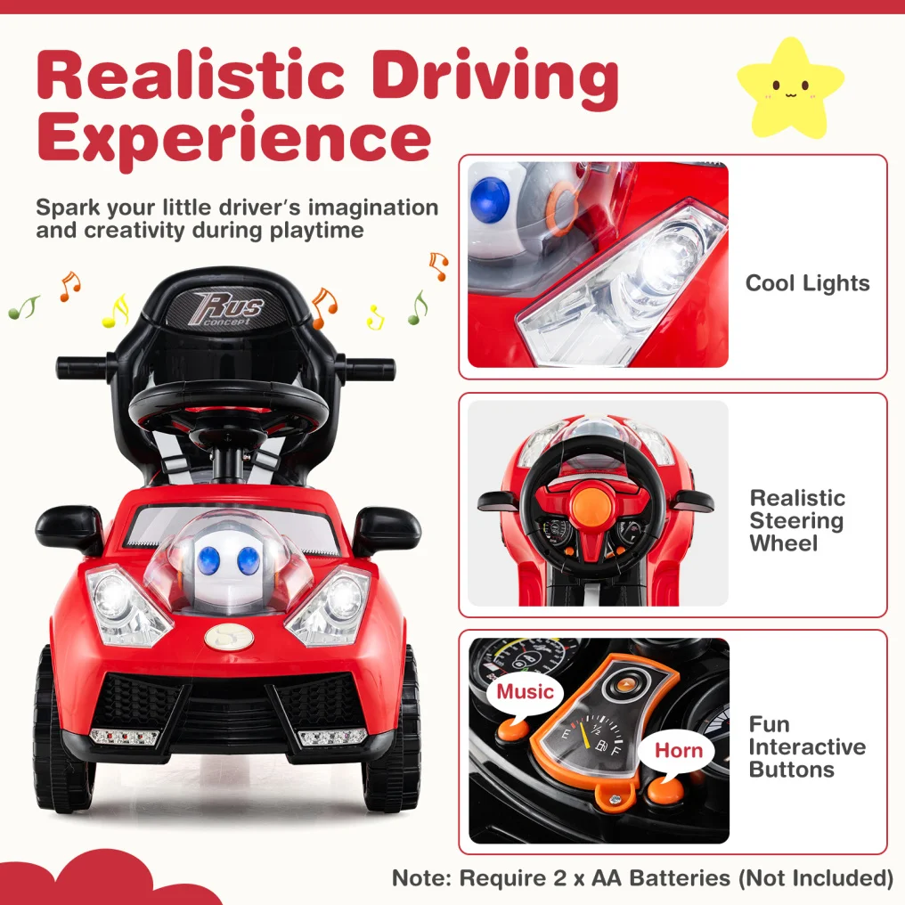 From a parent-guided push car for the littlest ones to a fun-filled ride-on toy for the more adventurous toddlers, this ride on toy provides endless entertainment and developmental benefits for your little one. Moreover, the realistic steering wheel, interactive buttons with horn, lights and music ensure a delightful driving experience, while safety features like the seat belt, guardrail and anti-slip pedals provide peace of mind. Added comforts like a cozy seat, adjustable canopy and hidden storage under the seat make every trip enjoyable, turning every ride into a treasure-filled adventure with ease and joy.