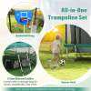 This all-in-one trampoline set includes a basketball hoop and a soccer goal, perfect for kids, teens, and adults. Safety is a priority with a tear-resistant safety net and anti-collision foam covers. The rust-proof metal frame supports up to 500 kg, providing reliability and safety. Your family will enjoy an exceptional jumping experience with high-tensile springs and a high-rebound jumping mat.