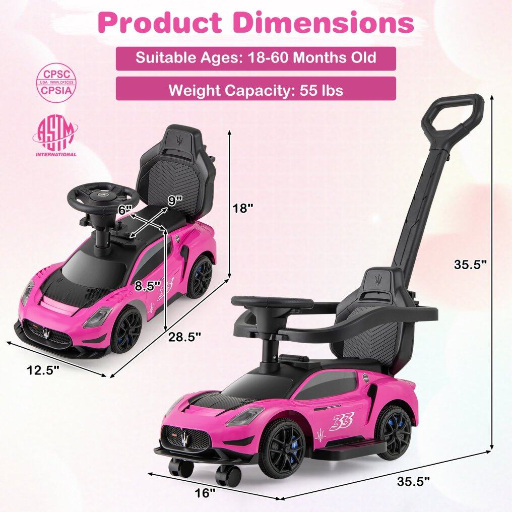 Maserati Licensed Push Car: Experience the thrill of luxury with the officially licensed Maserati push car, designed to inspire young hearts with its sleek style and iconic brand, making playtime a stylish affair.