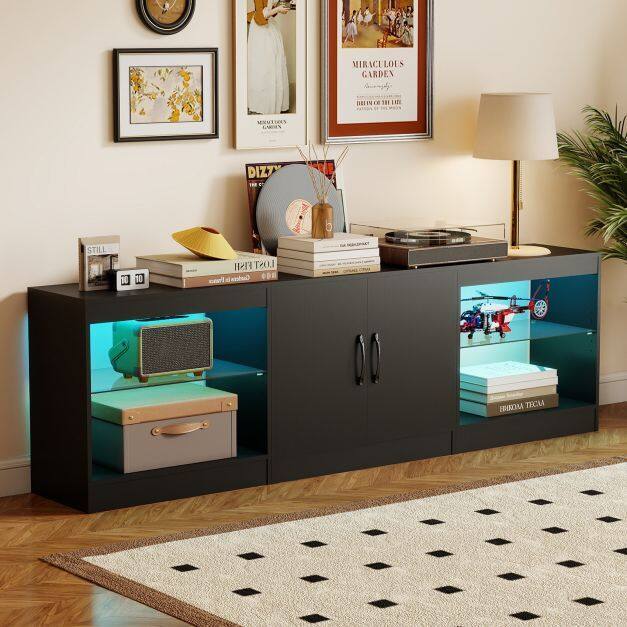 【Refined Touches】This media console combines tempered glass shelves with soft-close metal hinges and elegant handles for a premium tactile experience with every use. Anti-slip feet ensure optimal stability on hardwood, tile, or carpet.