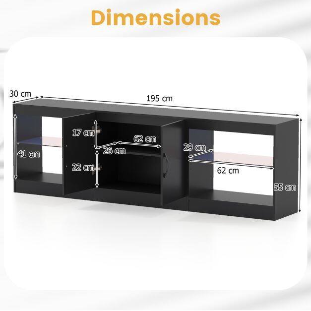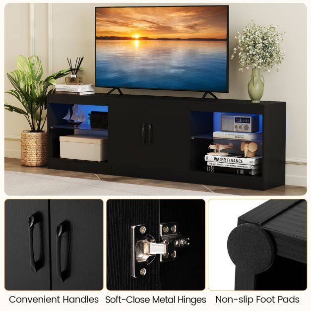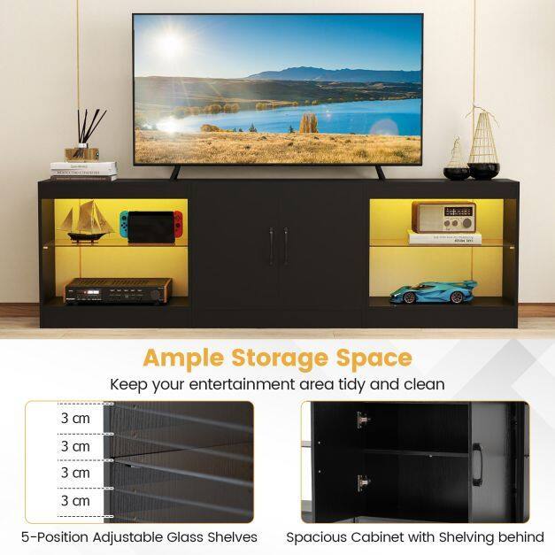 【Remote Controlled LED Show】This LED TV stand conceals two light strips offering 16 colors, 4 dynamic modes, 10 brightness levels, and 10 flashing speeds, all controlled from the comfort of your sofa with the included remote. Create a cinematic atmosphere for your movie nights!