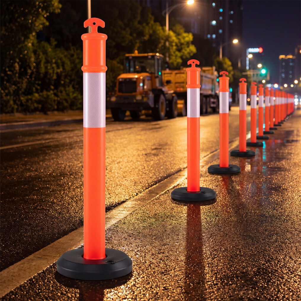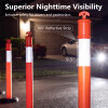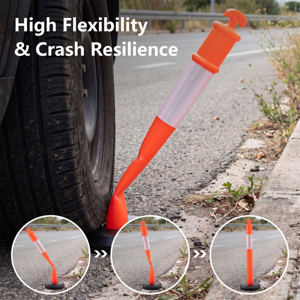● Tough PE Structure: Made from impact-resistant PE, the traffic delineators are built to bend for flexibility. The all-weather PE material performs through rain, snow, fog, and prolonged sun exposure, engineered for enduring outdoor use.