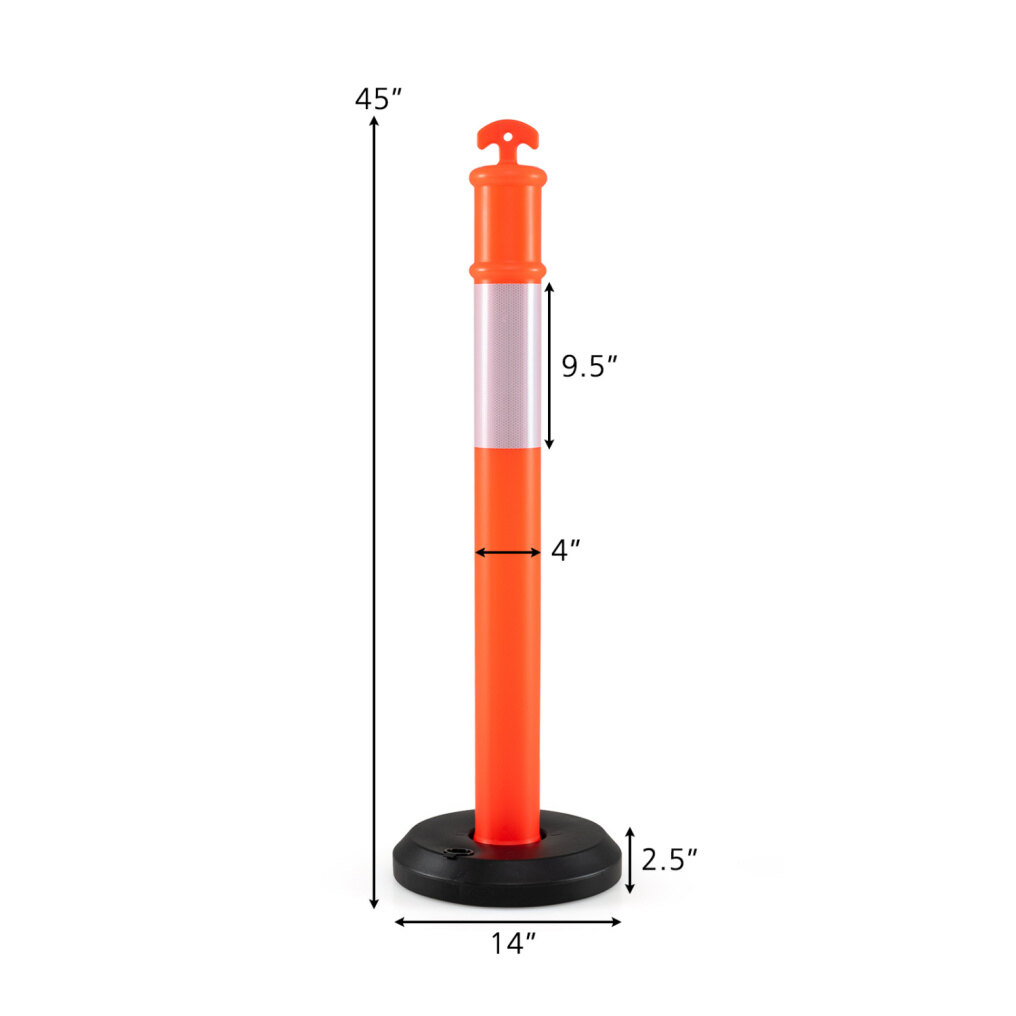 ● Superior Nighttime Visibility: Each traffic safety cone is equipped with a 9.5 inch wide reflective collar, offering bright 360° visibility in dusk and nighttime settings. With 45 inch height, the eye-catching posts enhance safety for drivers and pedestrians.