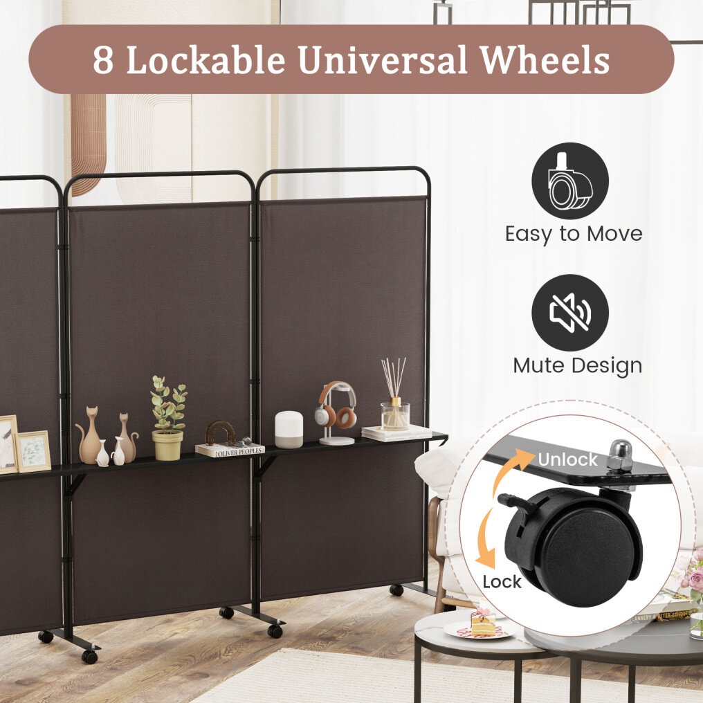 ● Enhanced Privacy Space: Whether you need to segment a room for privacy or create a temporary space, this rolling privacy screen adapts to your needs. With the flexibility of 180° swivel hinges, the folding wall divider can suit any room size or shape.