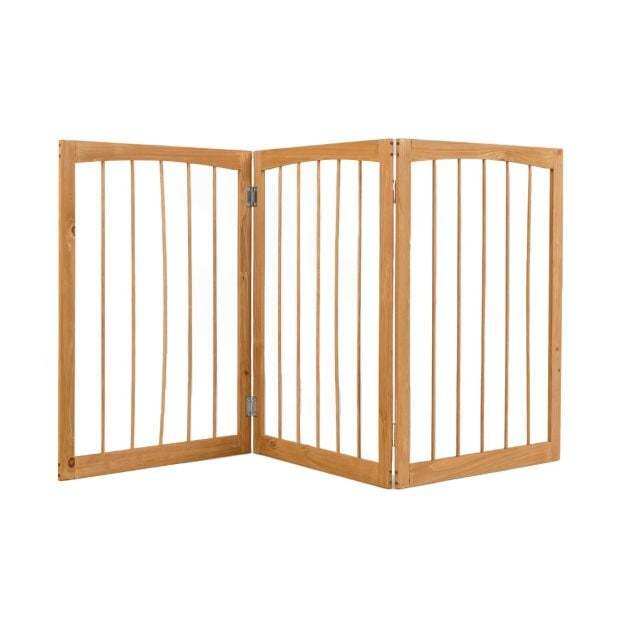 No Need for Assembly: Enjoy instant use with no assembly required! Simply unfold and place this wooden fence wherever needed. Plus, the freestanding design requires no wall attachments, protecting your walls from damage, also saving you time and effort.