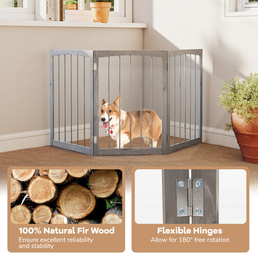 Solid Wood Construction: The pet barrier is crafted of 100% natural fir wood, which is safe and healthy while ensuring good reliability, built to last. Additionally, its natural wood grains also add a touch of elegance that could seamlessly blend with your home decoration.