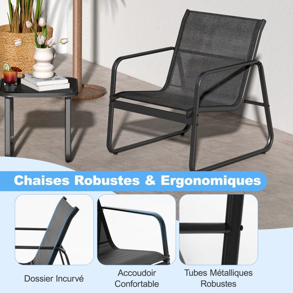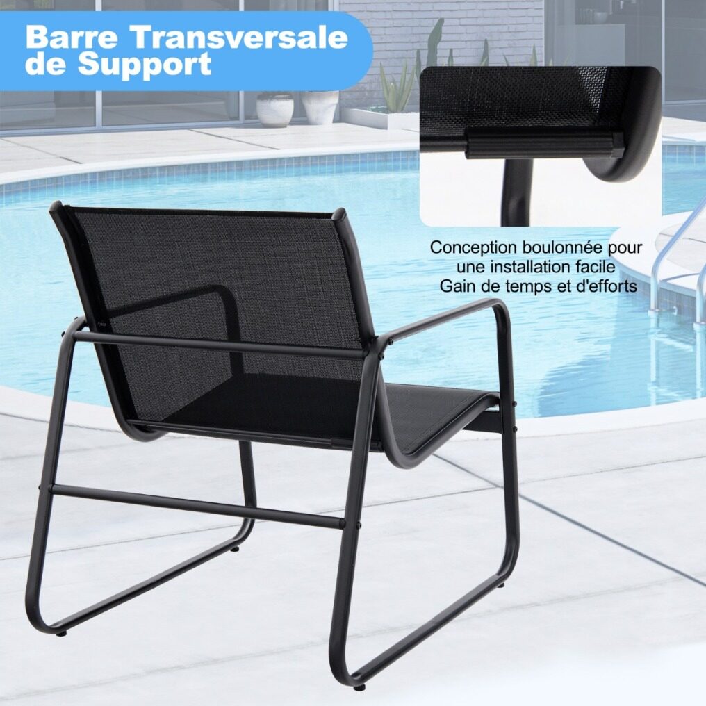 【Sturdy and Ergonomic Chairs】The 2 chairs are both sturdy and comfortable to sit on. With a curved backrest and comfortable armrests, you will feel more relaxed. And the rust-resistant metal pipes provide strong support, allowing the chair to hold up to 150 kg.