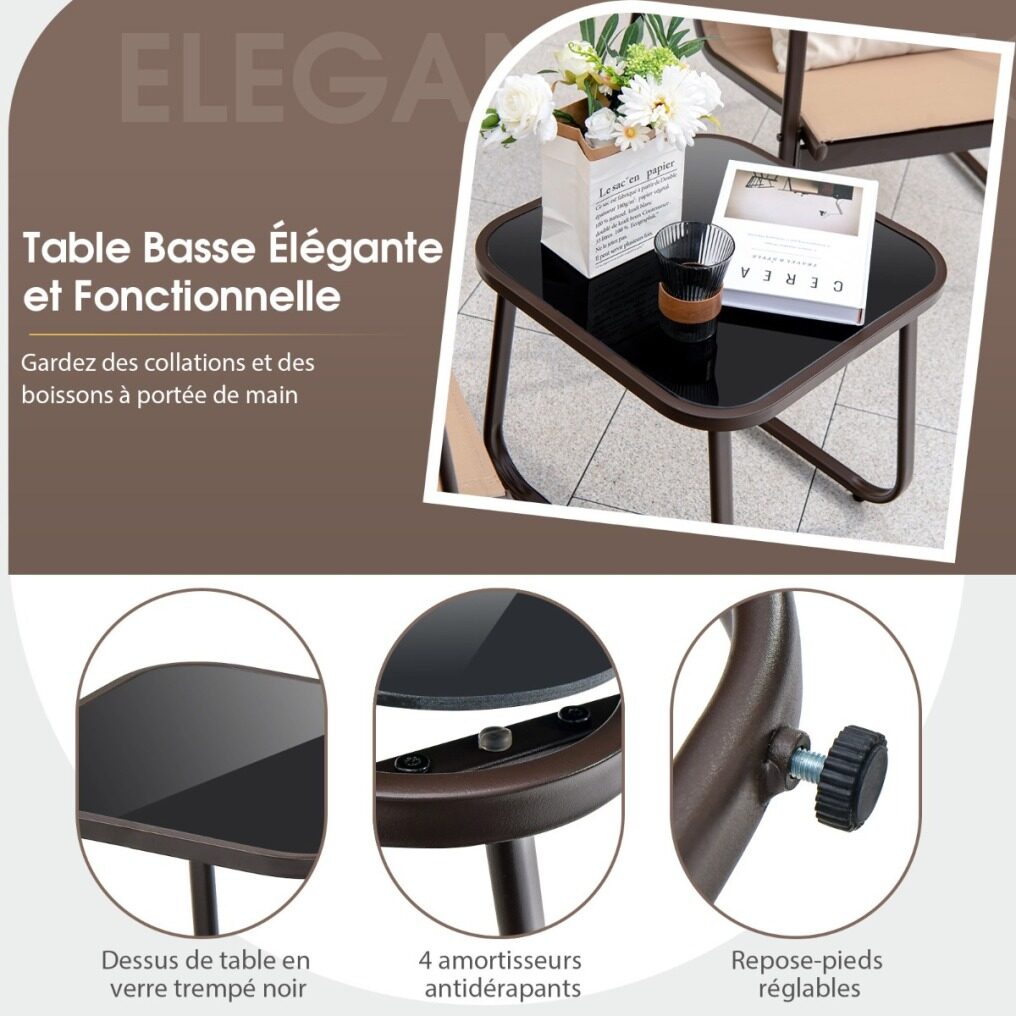 【Suitable for Multiple Places】With modern and elegant appearance, the 3-piece patio set will be perfect for multiple outdoor places, such as backyard, poolside, balcony, etc.