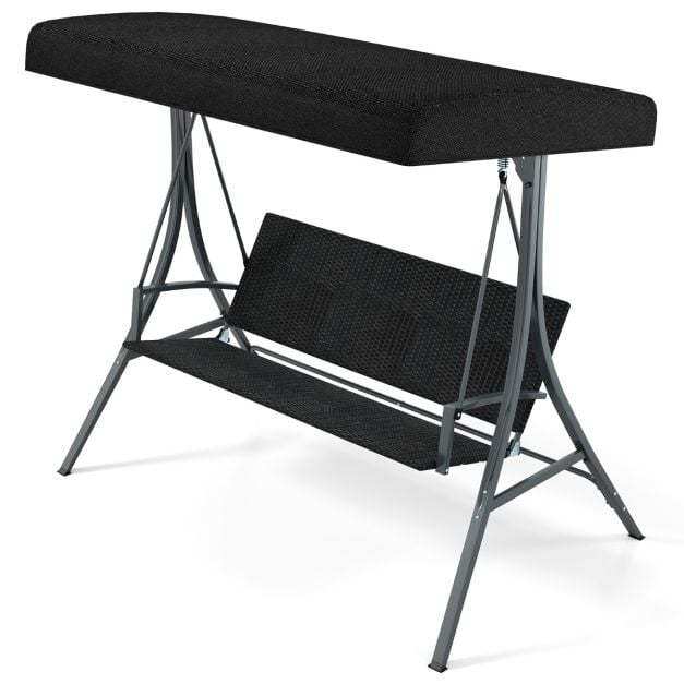 Featuring a 65° adjustable canopy, this swing provides ample shade, easily controlled by knobs on both sides for maximum comfort. The appealing rattan seat and back are known for robustness and breathability, promising long-lasting elegance. Supported by sturdy metal A-frame and secured with heavy-duty springs, the swing chair comfortably seats 3 people with a total load capacity of 1000 lbs. Ideal for the backyard, poolside, or balcony, this canopy swing is the ultimate relaxation hub for you and your loved ones. If you are looking for such a product, do not hesitate to buy it!