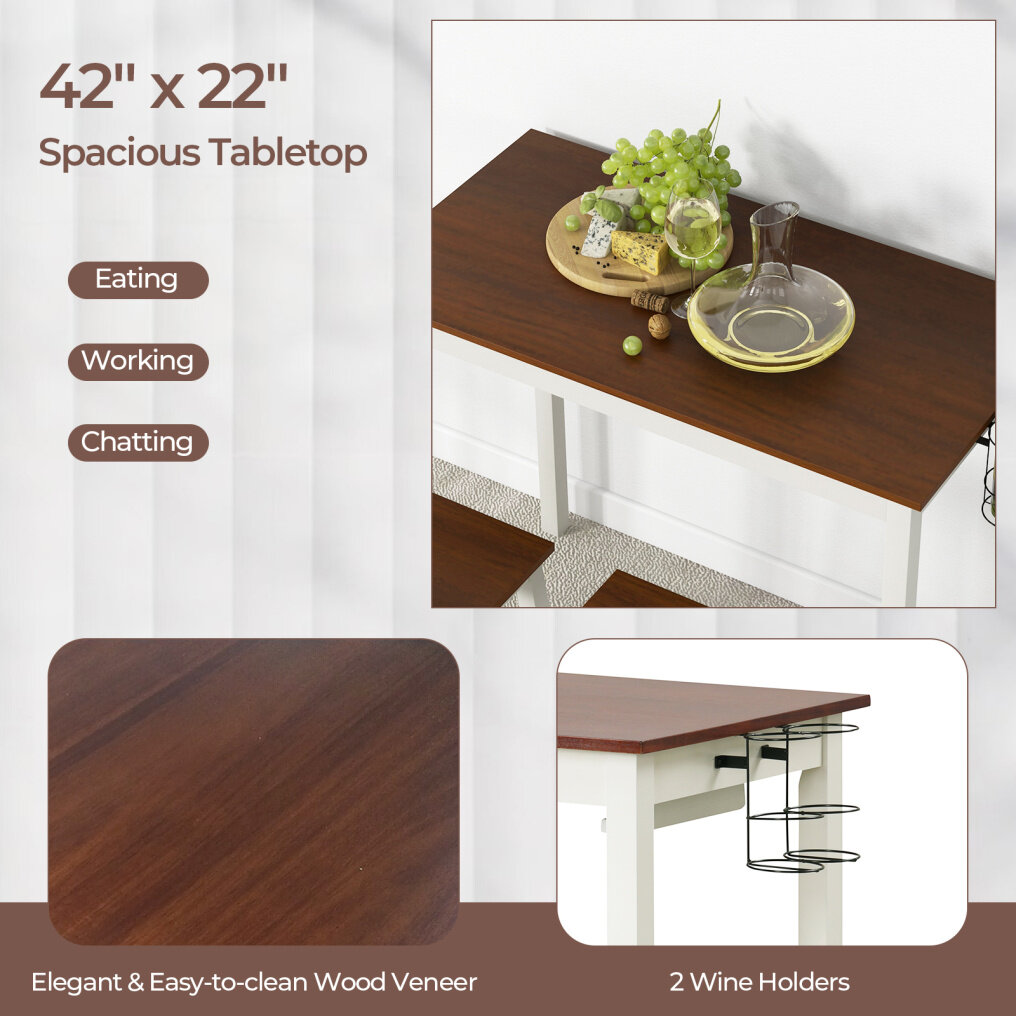● 2 Extra Wine Holders: The compact table set features two wine holders attached to the table side, providing a secure and stylish storage solution. This clever addition not only saves precious table space but also eliminates the risk of accidentally knocking over a bottle of wine during mealtime.