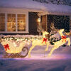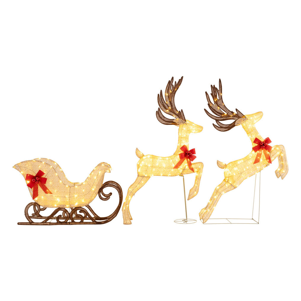 ● Glowing Holiday Decoration: With a total of 280 warm white LED lights, this Christmas deer and sleigh set casts a soft and inviting glow, lighting up your holiday landscape. The lights ensure your display shines brilliantly, enhancing the festive spirit both day and night.