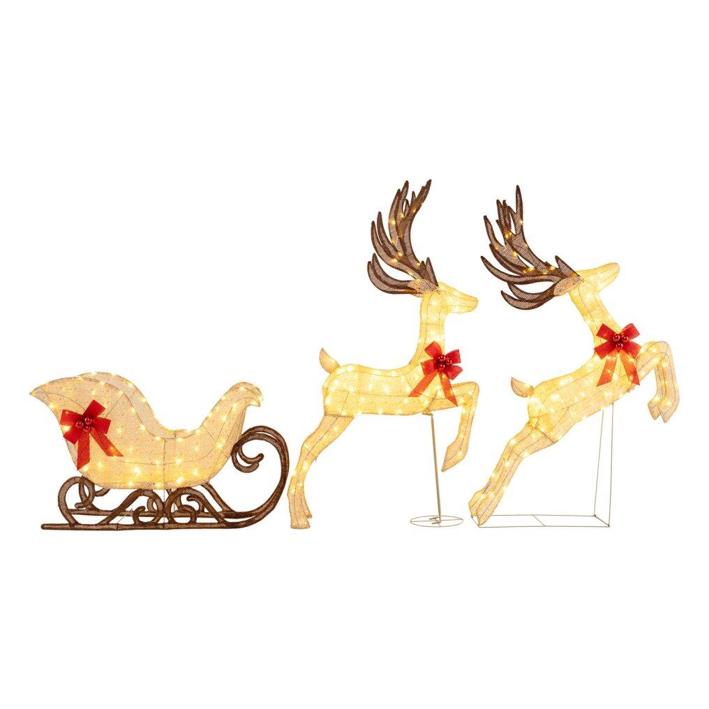 ● Glowing Holiday Decoration: With a total of 280 warm white LED lights, this Christmas deer and sleigh set casts a soft and inviting glow, lighting up your holiday landscape. The lights ensure your display shines brilliantly, enhancing the festive spirit both day and night.