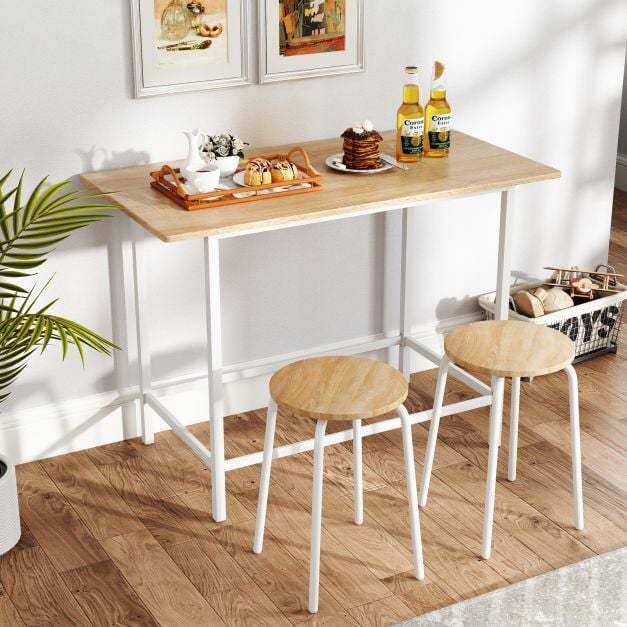 Space-saving Furniture Set: The 2 chairs can be tucked neatly under the table when not in use. The rectangular kitchen table fits into any narrow space, you can place it against the wall or behind the couch, saving your room space.