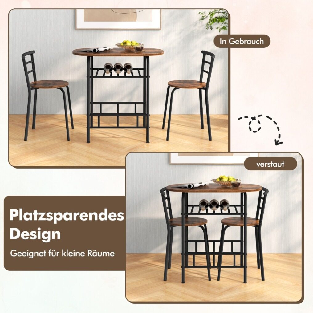 Comes with 1 functional dining table for storage and 2 dining chairs for sitting