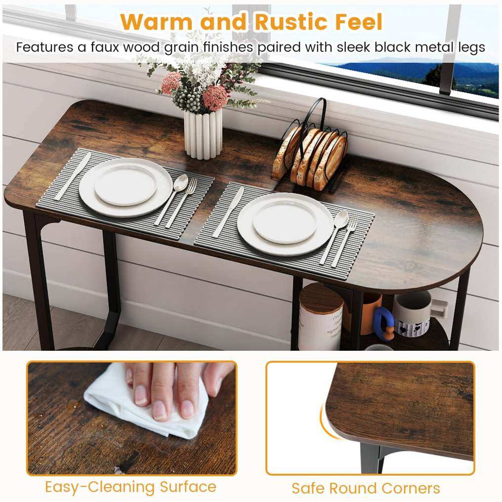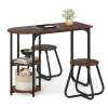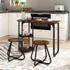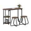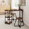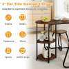 ● 3-Piece Industrial Dining Set: This dining furniture includes a rectangular table and 2 stools, making it perfect for couples or small families. Plus, the table features practical 2-tier side storage shelves, offering extra space for snacks, books, tableware, wines, spices, or coffee cups, keeping your dining area clutter-free.