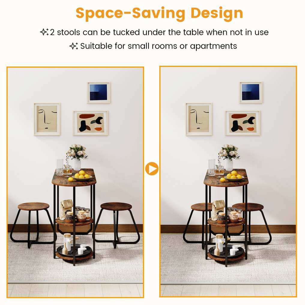 ● Space-Saving Design for Small Areas: 2 stools can be tucked under the table when not in use, maximizing your living space. This table set is an ideal choice for compact apartments, small kitchens, breakfast nooks, or dorms where every inch counts.
