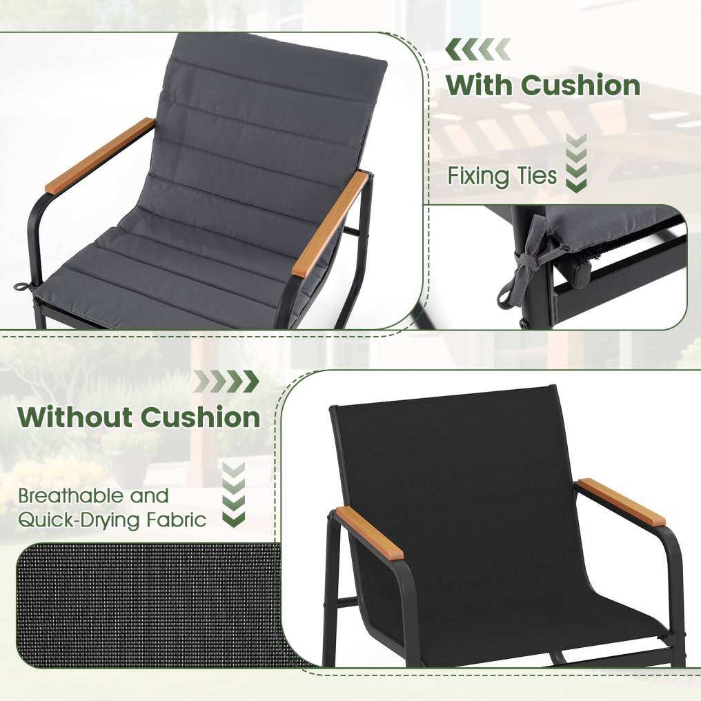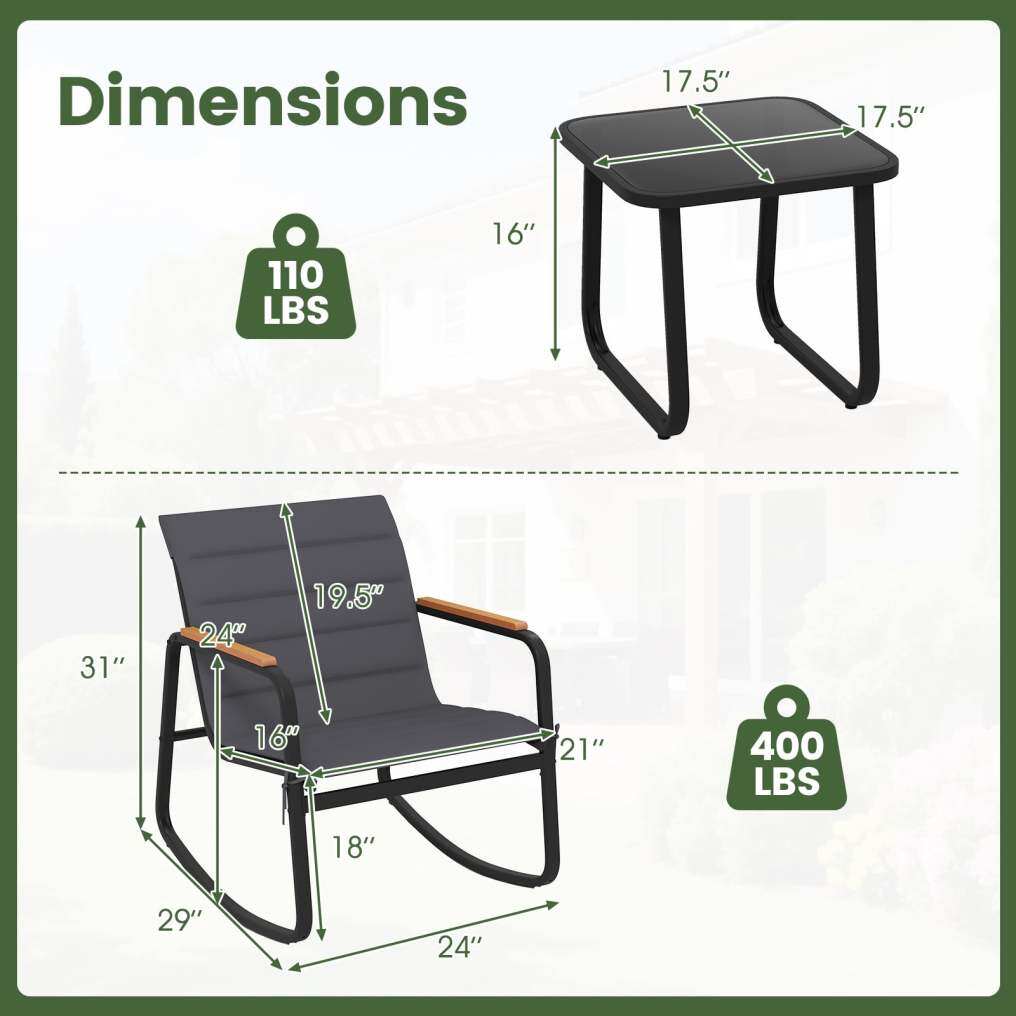 Stable & Gentle Rocking Motion: With its rocking function, this outdoor furniture set invites you to ultimate relaxation. Specially designed non-slip mats and anti-tip devices ensure a smooth rocking motion and prevent unwanted tipping or sliding.