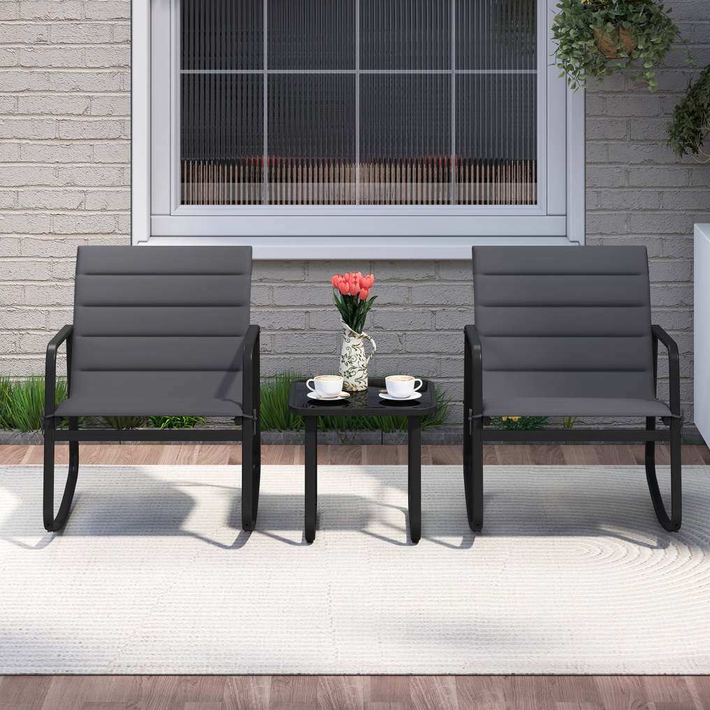 Stable & Gentle Rocking Motion: With its rocking function, this outdoor furniture set invites you to ultimate relaxation. Specially designed non-slip mats and anti-tip devices ensure a smooth rocking motion and prevent unwanted tipping or sliding.