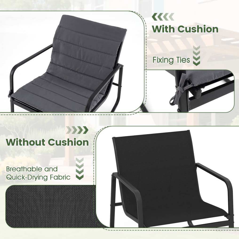 Breathable Fabric & Soft Cushions: The patio swing set comes with soft cushions that are secured with fastening straps for a stable hold. Without the cushions, you can enjoy a breathable, quick-drying fabric that stays pleasantly cool even on hot days.