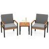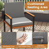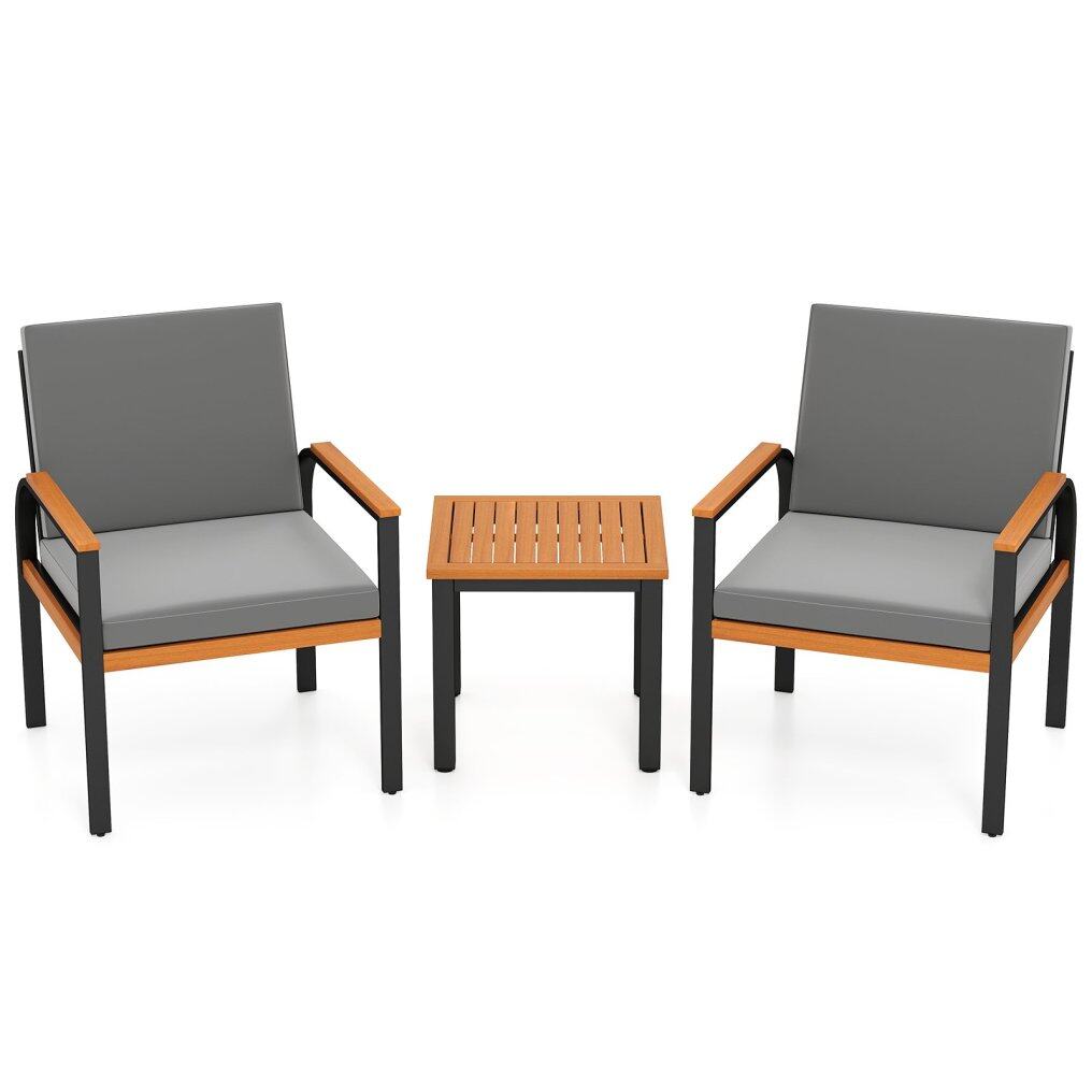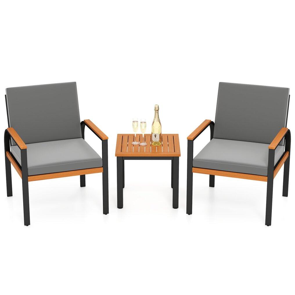 ● Ergonomic Comfort: Ergonomically designed with an inclined backrest and cozy wood armrests, each chair in this patio conversation set brings optimal support for your body, creating a perfect spot for hours of seating without fatigue.