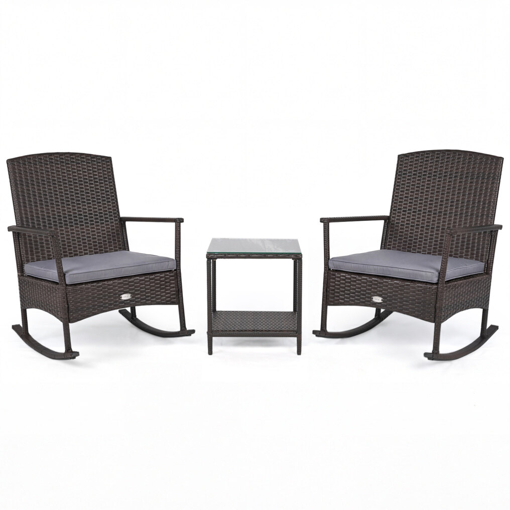 3 Piece Patio Rocking Set Wicker Rocking Chairs with 2-Tier Coffee Table-Gray Sourcing Wholesale Supplier/Distributor | B2B Marketplace