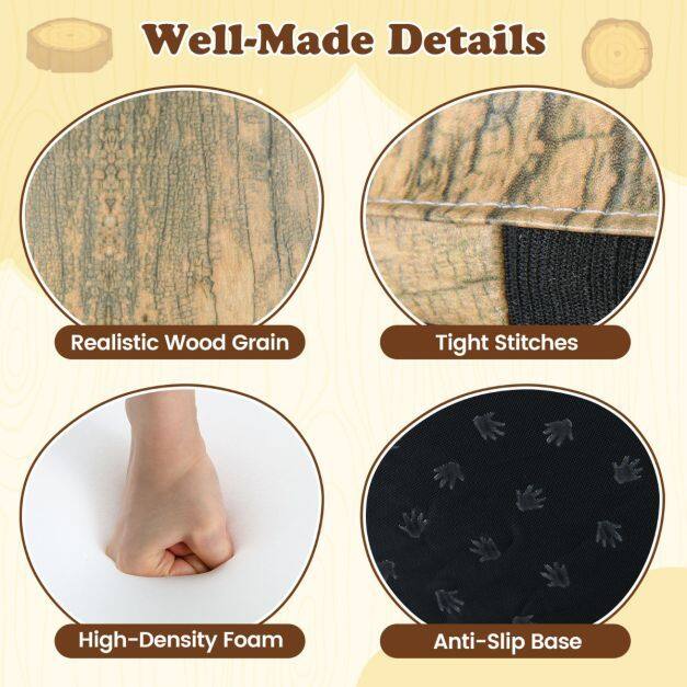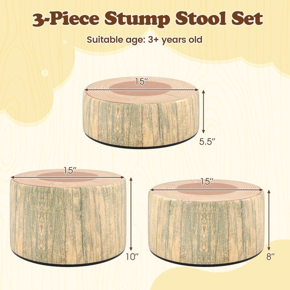 ● Natural-Themed Design: These charming tree stump stools bring the beauty of the outdoors inside, making learning, reading, or playing more engaging and adding a whimsical touch to any kids’ space.
