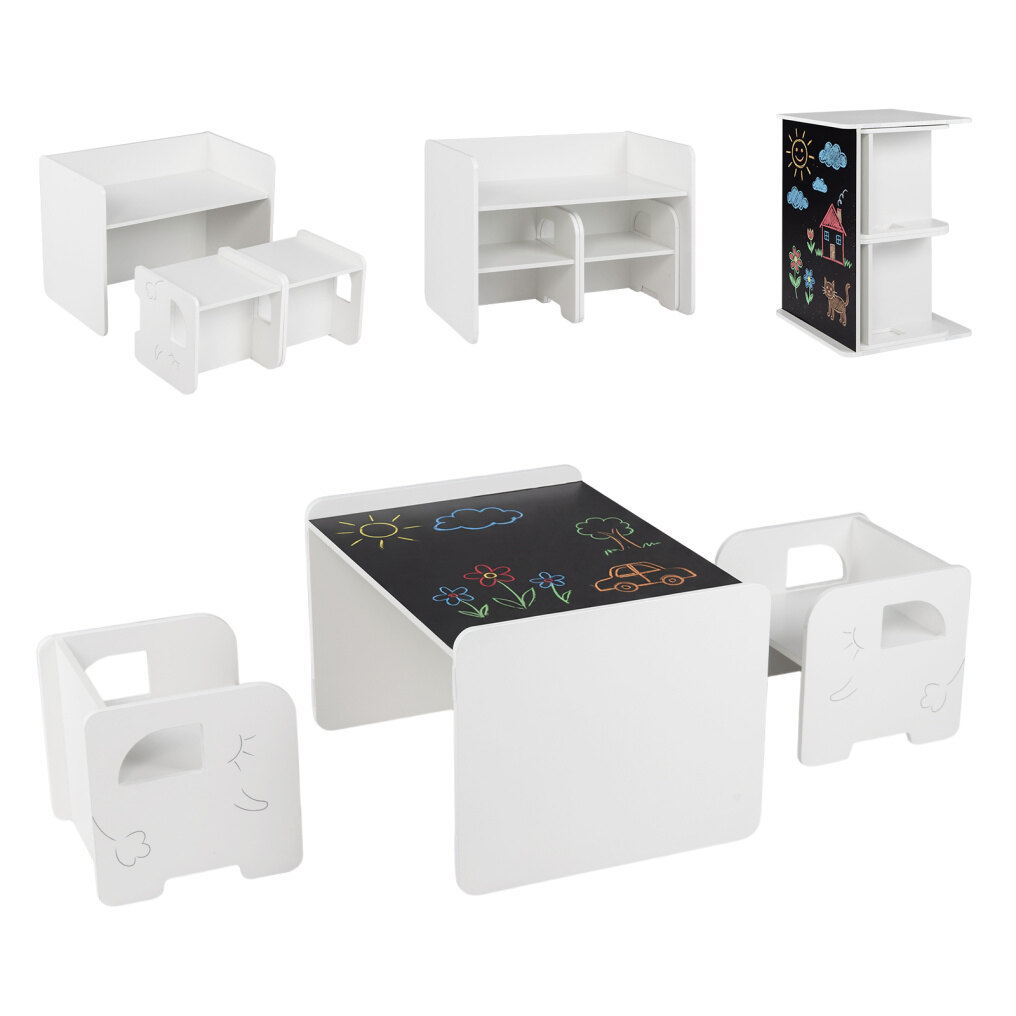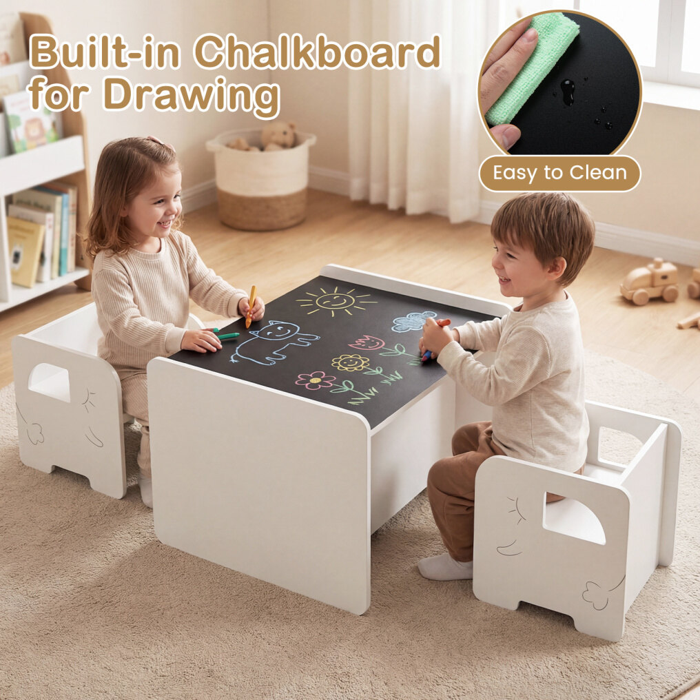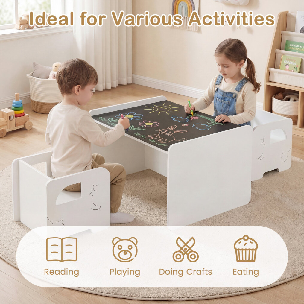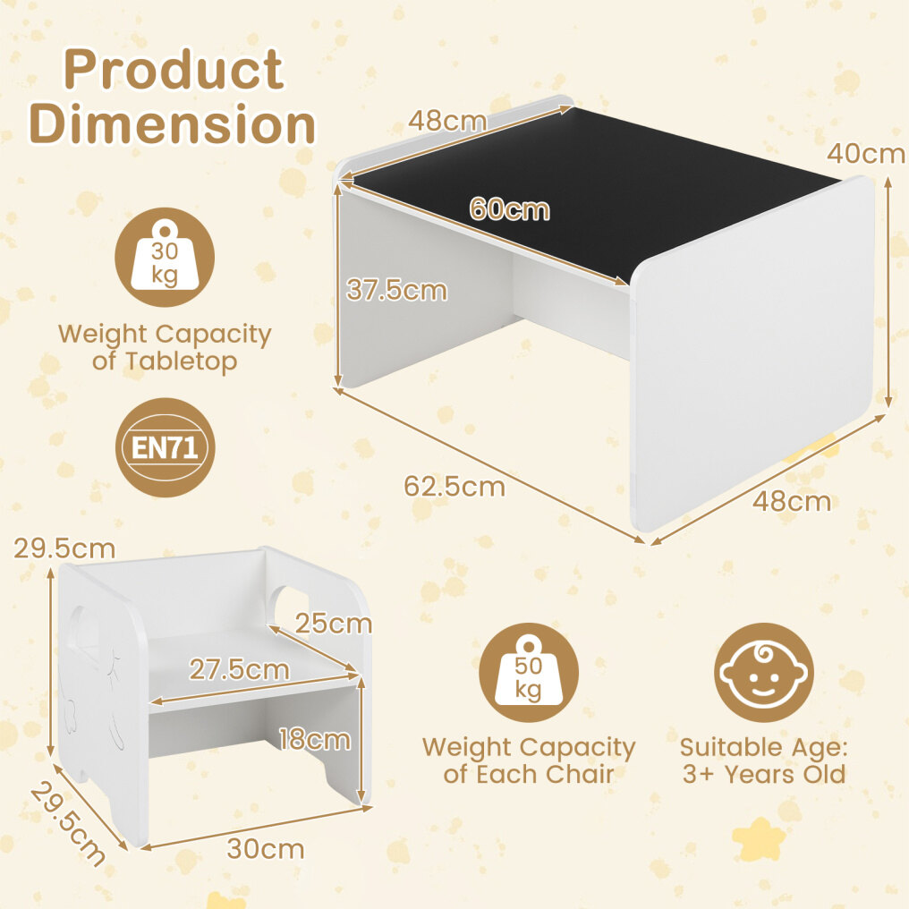 ● Safe & Child-friendly Design: Smooth rounded corners protect your child's delicate skin, preventing accidental injuries. The kid-friendly size makes it ideal for 3+ years old boys and girls. Plus, the kids table comes with a chalkboard for creative drawing, which is great for kid’s imagination and creativity. Adorable patterns appeal to your child.