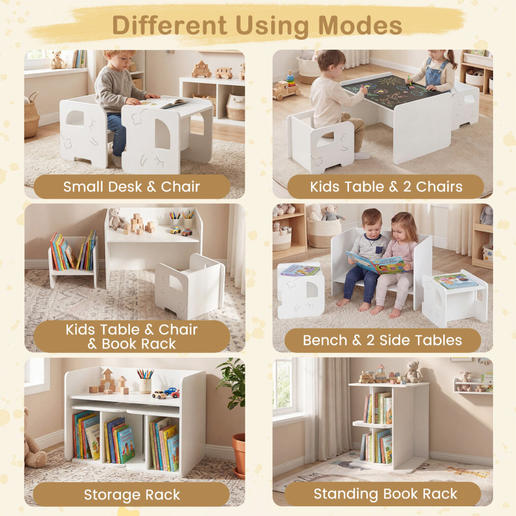 ● All in One Construction: The table can be used as a toddler desk or bench, while each chair serves well as a book rack or storage shelf, meeting kid’s different needs. The kids furniture set is perfect for various activities, such as eating, studying, reading, and crafting.