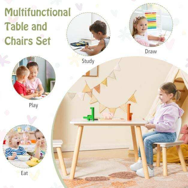 ● Specially Designed for Kids: The kid's table and chairs set includes 1 square table and 2 matching chairs. The height of the tabletop is 17", while the chair seat height from the ground is 10", which is suitable for toddlers aged from 3 to 6 years old. Your little one can use them to eat, draw, study or play.