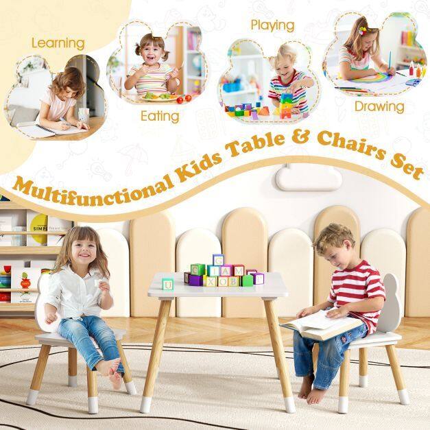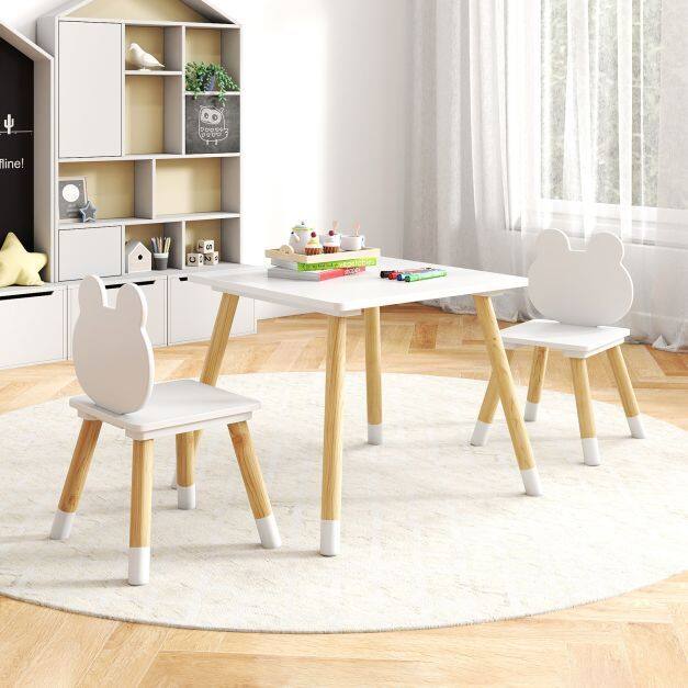 ● Versatile Table and Chair Set: This kids furniture set features a square table, plus 2 cute and comfy chairs, making it easy to create a snug spot for your child's daily activities. Whether for drawing, crafting, learning, or enjoying snacks, the set keeps every moment comfortable and fun.