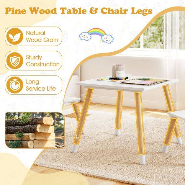 ● Sturdy and Stable Construction: Built with solid pine wood legs, this toddler writing table set easily withstands the rigors of daily play. Additionally, the splinter-free surfaces and smooth, rounded corners offer extra protection for kids' tender skin.