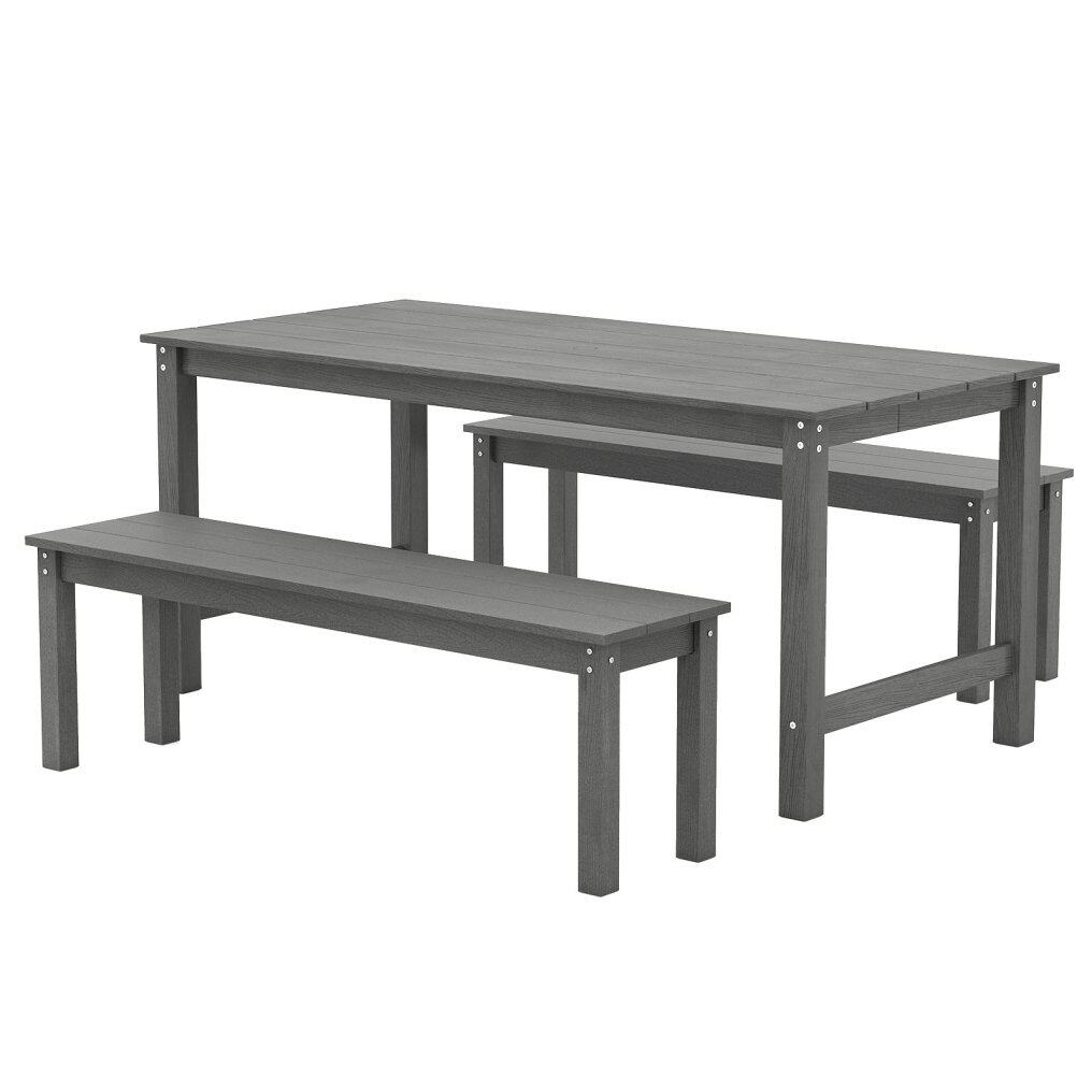 ● Chic 3-Piece Patio Set: This complete patio furniture set includes 1 rectangular dining table and 2 backless bench finished with a realistic wood-like grain that infuses rustic charm into your garden, backyard or poolside.