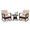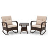 ● Ideal Relaxing Option: With thoughtful design and appealing looks, this wicker rocking set provides a peaceful spot for you to sip your morning coffee, read a book, or enjoy the sunset. Dimension of rocking chair: 32" x 26.5" x 34" (L x W x H). Dimension of coffee table: 20" x 20" x 20" (L x W x H).