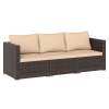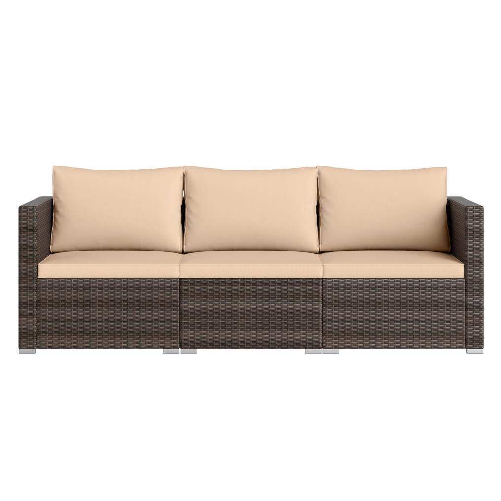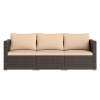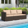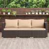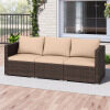 3 Pieces Patio Sectional Sofa Set with Soft Cushions-Beige