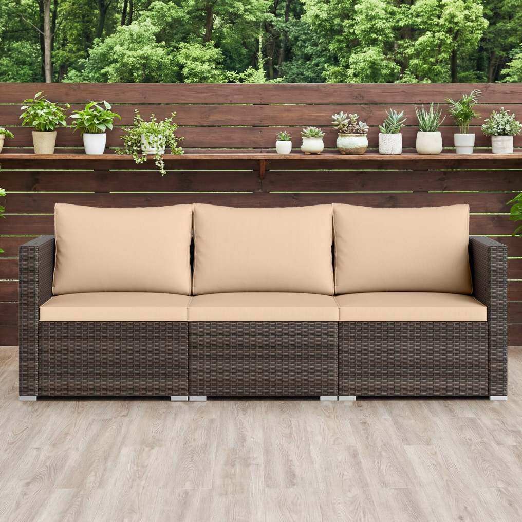 Wide Outdoor Application: Designed to brighten patios, gardens, and poolside areas, the outdoor sectional seating balances practicality with elegant design for years of enjoyment. Dimensions of each arm sofa: 26.5" × 26.5" × 24.5", dimensions of each armless sofa: 23.5" × 26.5" × 24.5" (L × W × H).
