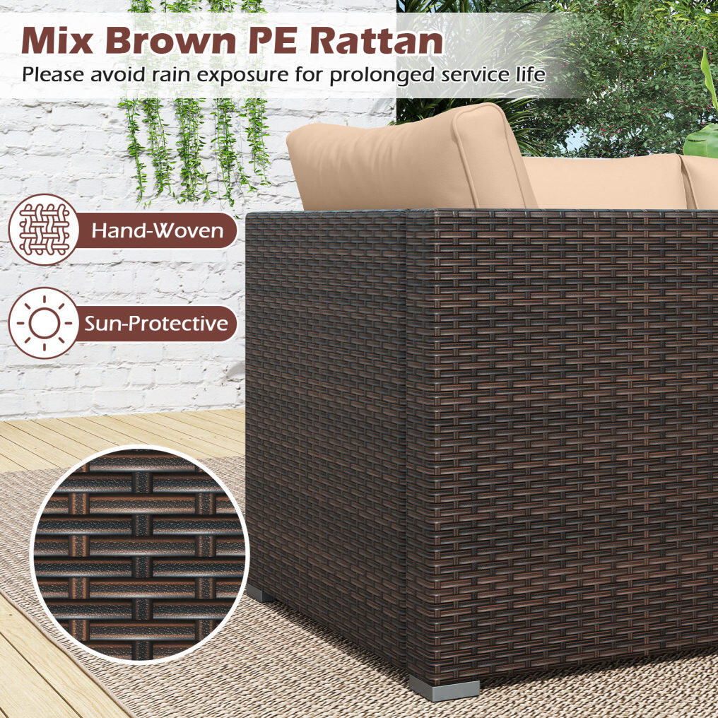 Well-Woven PE Rattan: The patio sectional sofa set features mix brown PE rattan, expertly hand-woven and treated for sun resistance. This premium material combines style with durability, making it an excellent choice for outdoor settings. Note: Please avoid rain exposure for prolonged service life.