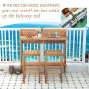 ● Guide for Assembly and Size: With the included hardware, you can install the bar table on the balcony rail. Detailed instructions also help a lot. The bar table measures 48" x 15" x 48"(L x W x H) and each bar stool measures 16.5" x 15" x 30"(L x W x H).