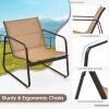 ● Sturdy and Ergonomic Chairs: The 2 chairs are both sturdy and cozy for you to sit on. Sitting on a chair with a curved backrest and comfortable armrest, you will feel more relaxed. And the rustproof metal pipes give strong support, enabling the chair to load up to 150 kg.