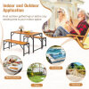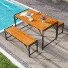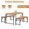 ● Complete 3-Piece Set: This outdoor dining set includes a rectangular table and 2 benches, which could comfortably accommodate 4-6 people. It is ideal for family gatherings or casual meals with friends. The table measures 53" x 28" x 30" (L x W x H), and the bench measures 47" x 14" x 18" (L x W x H).