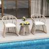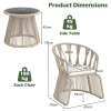 ● Aesthetic & Cozy Addition: Perfect for any outdoor setting like backyard, porch or poolside, this 3-piece patio bistro set merges aesthetics with coziness. Note: Please avoid rain exposure for prolonged service life. Dimension of chair: 27.5" x 25.5" x 31" (L x W x H). Dimension of side table: 20" x 18" (Dia x H).